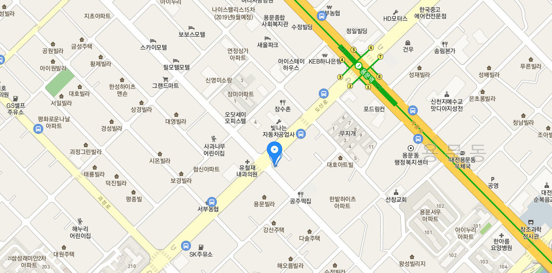 ÁÖ¼Ò : ´ëÀü±¤¿ª½Ã ¼±¸ µµ»ê·Î 358 ÁöÇÏöÀ» ÀÌ¿ëÇϽô °æ¿ì: ¿ë¹®¿ª 2¹ø Ãⱸ¸¦ ÅëÇØ¼ µµº¸·Î 7ºÐ°Å¸®